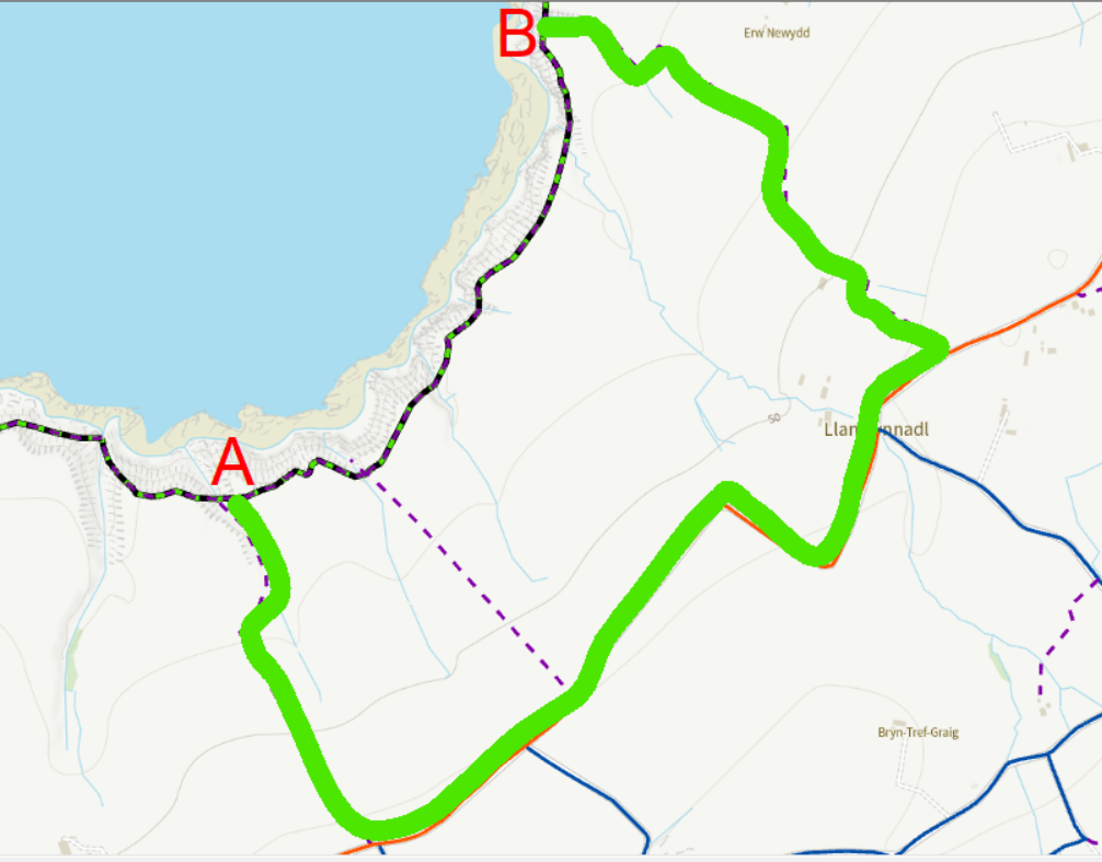 Please be aware of a dangerous cliff edge between Southerndown and Nash Point in the Vale of Glamorgan. There is a large fissure along the cliff edge (above Traeth Mawr), which is likely to collapse in the future. It has been cordoned off by the Rangers and there is plenty of space inland on the field to avoid this section and continue along the Wales Coast Path. The location of the fissure is https://what3words.com/future.interacts.reduction (updated 16 Janaury 2026)