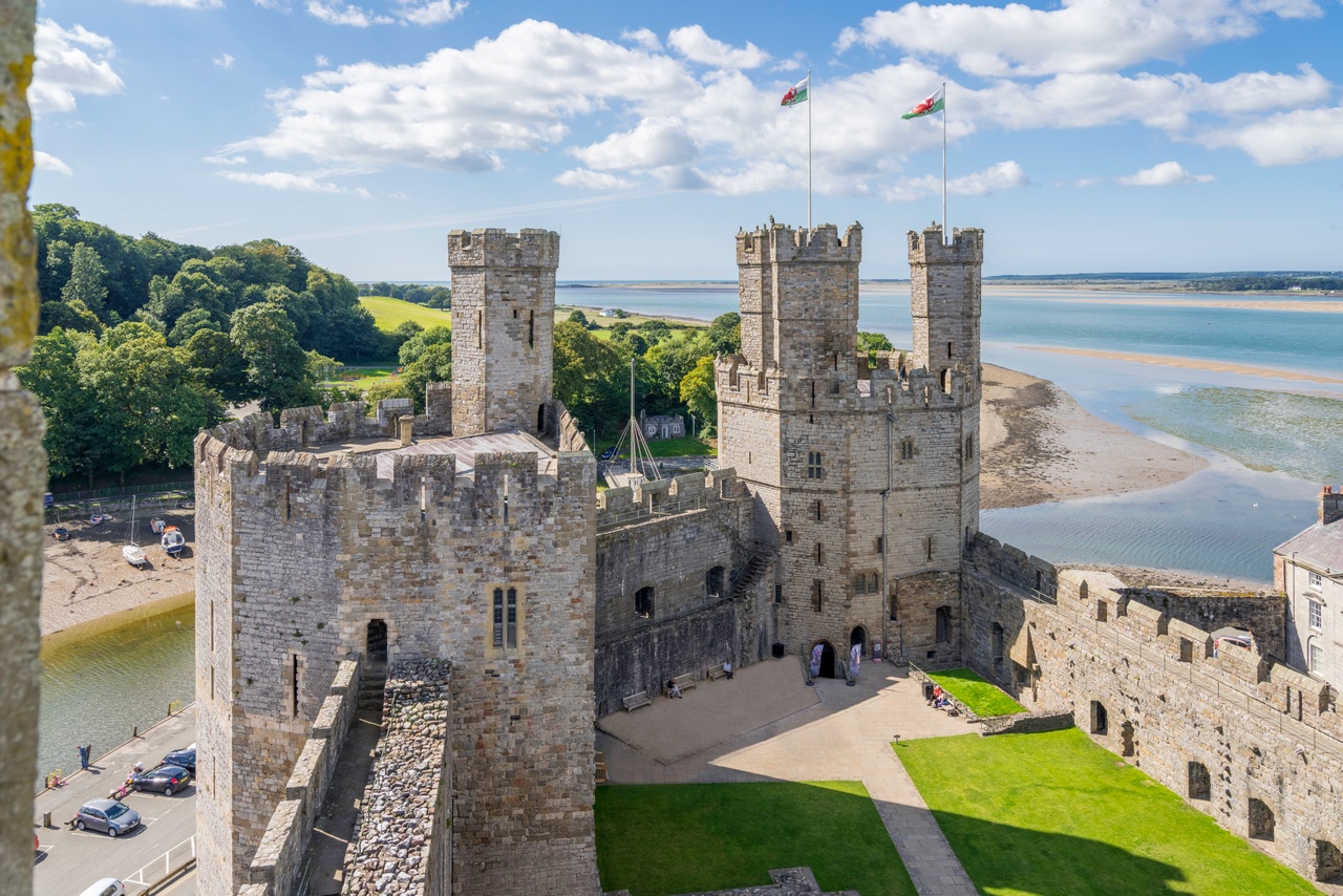 Mae pontydd ysblennydd a llwybr coetir ar hyd afon brydferth Menai yn eich tywys i un o gestyll canoloesol gorau’r byd.