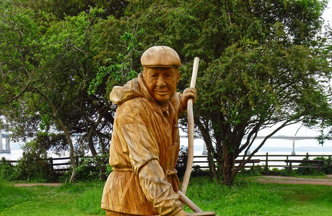 Archwiliwch ben pellaf deheuol y llwybr sy'n edrych dros Aber Afon Hafren a throsodd i Loegr